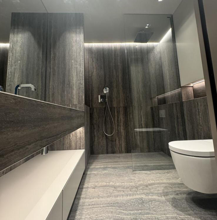 Chez RRC Carrelage Sàrl, nous concevons et rénovons des salles de bains sur mesure, adaptées à vos besoins, vos envies et votre budget.Avec plus de 15 ans d’expérience dans le domaine, notre équipe vous accompagne à chaque étape : du choix des matériaux à la pose de carrelage, en passant par l’optimisation de l’espace et les finitions haut de gamme.